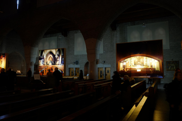 De Thuiskerk, 2022-2024Duratrans lichtkastTriptiek in multiplex frames300 x 375 cm.De Visionaire kerk, 2019-2024Duratrans lichtkastTriptiek in multiplex frames300 x 375 cm.